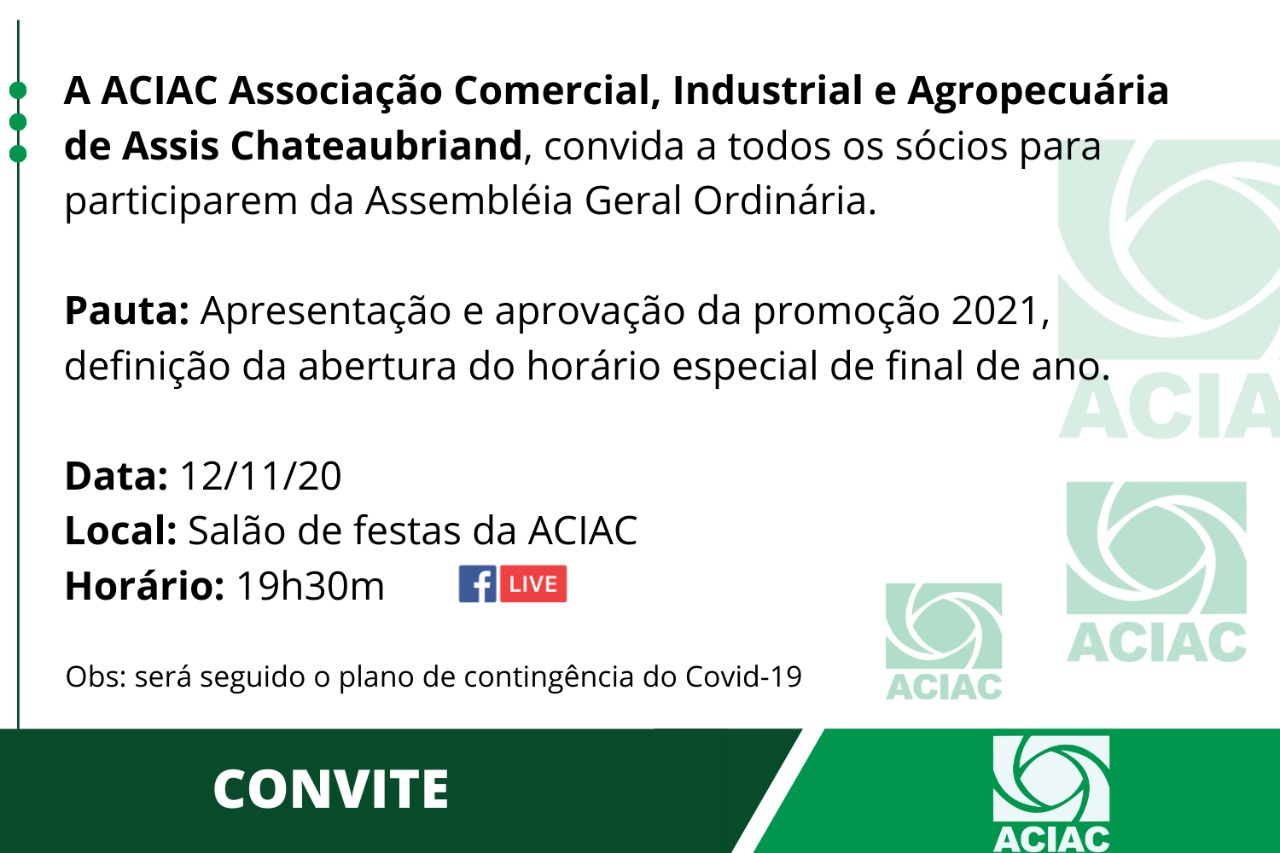 ACIAC discute em assembleia promoções de 2021 e horário especial do comércio