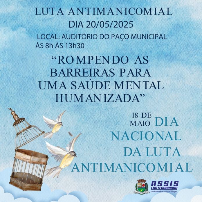 O município de Assis Chateaubriand, por meio da Secretaria de Saúde e do CAPS (Centro de Atenção Psicossocial), realiza, no dia 20 de maio, um evento especial em referência ao Dia Nacional da Luta Antimanicomial, celebrado oficialmente em 18 de maio. A atividade ocorrerá no Centro de Convenções (Auditório Municipal) e contará com uma palestra ministrada pela professora doutora Ana Carolina Becker Nisside, que abordará aspectos relevantes sobre o tema.