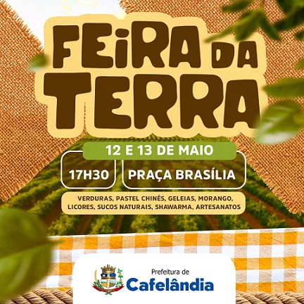 As delícias produzidas pelas mãos de profissionais cafelandenses esperam por você em mais uma edição da Feira da Terra que acontece nesta sexta-feira, 12 e sábado, 13. Na programação estarão expostos para comércio, verduras, pastel chinês, geleias, morangos, licores, sucos naturais, shawarma e artesanatos.