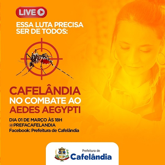 Nesta quarta-feira, 1º,  às 18h, as secretarias de Saúde e Agricultura e Meio Ambiente de Cafelândia promovem uma live informativa sobre a situação da dengue no município e as ações que serão tomadas e esclarecimentos em geral. Acompanha pelo facebook da Prefeitura.