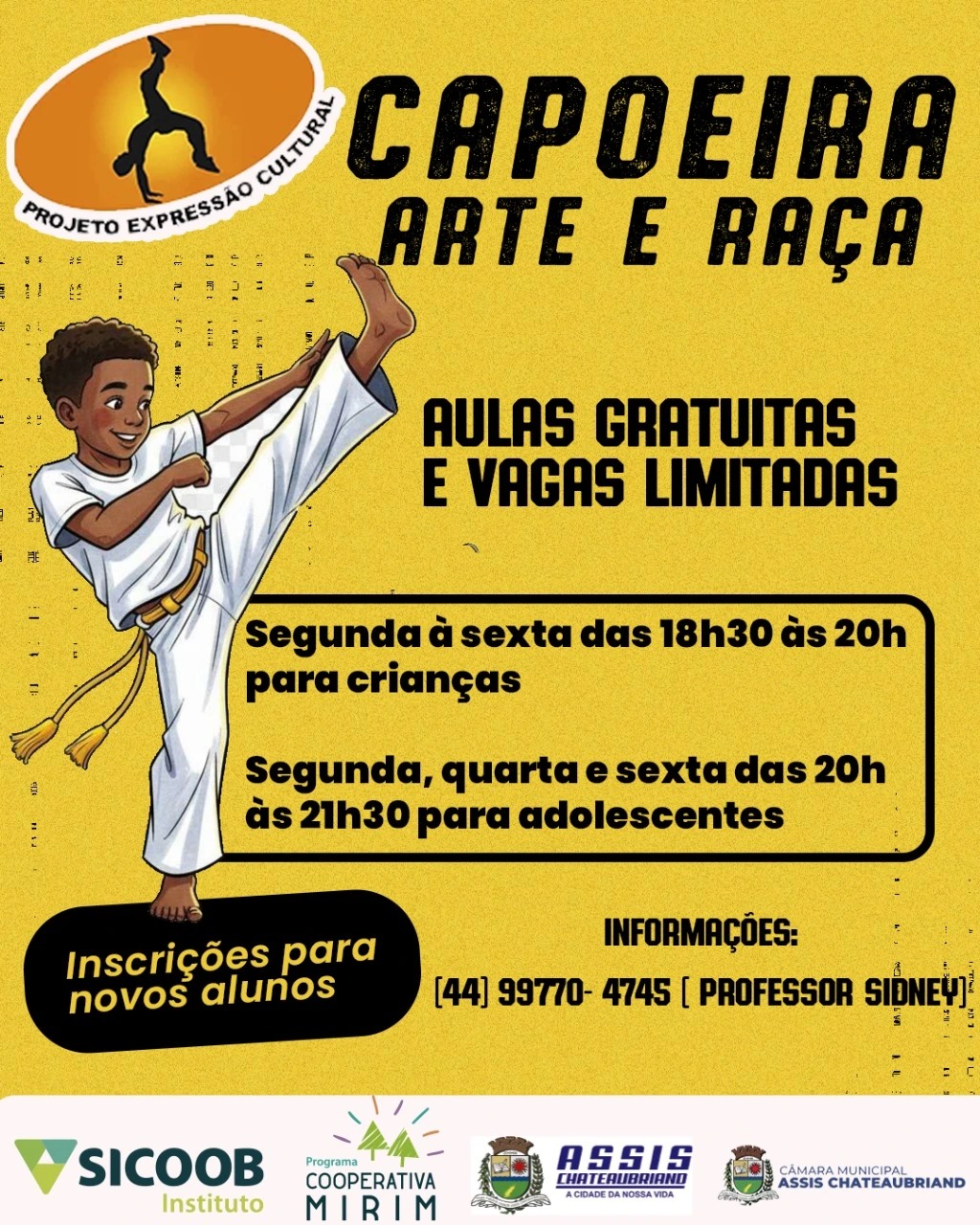 Capoeira Arte e Raça – O Projeto Expressão Cultural/Grupo Arte e Raça conta há vários anos com o apoio do Sicoob Médio Oeste por meio do Instituto Sicoob. Atualmente, são atendidas gratuitamente mais de 60 crianças, mas, graças ao apoio dos poderes Executivo e Legislativo, agora o atendimento foi ampliado, em Assis Chateaubriand.