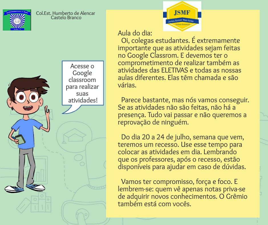 O objetivo é destacar a necessidade de o aluno manter o foco e sempre realizar as atividades disponíveis no Classroom.