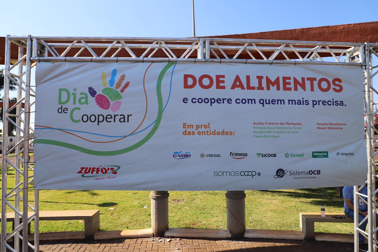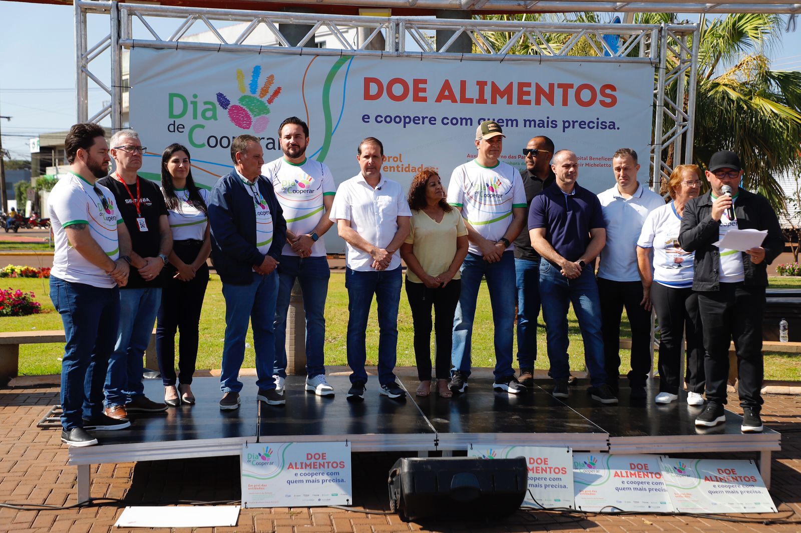 Neste sábado, 30, a Praça do Chafariz, no centro de Assis Chateaubriand, foi o local de encerramento da ação relacionada ao Dia de Cooperar 2025, promovida pelas cooperativas Frimesa, Sicoob, Cresol, C.Vale, Uniprime, Sicredi e Unimed. Durante quatro sábados consecutivos (2, 9, 16 e 23 de agosto), as cooperativas se uniram para arrecadar alimentos em frente a sete supermercados da cidade.