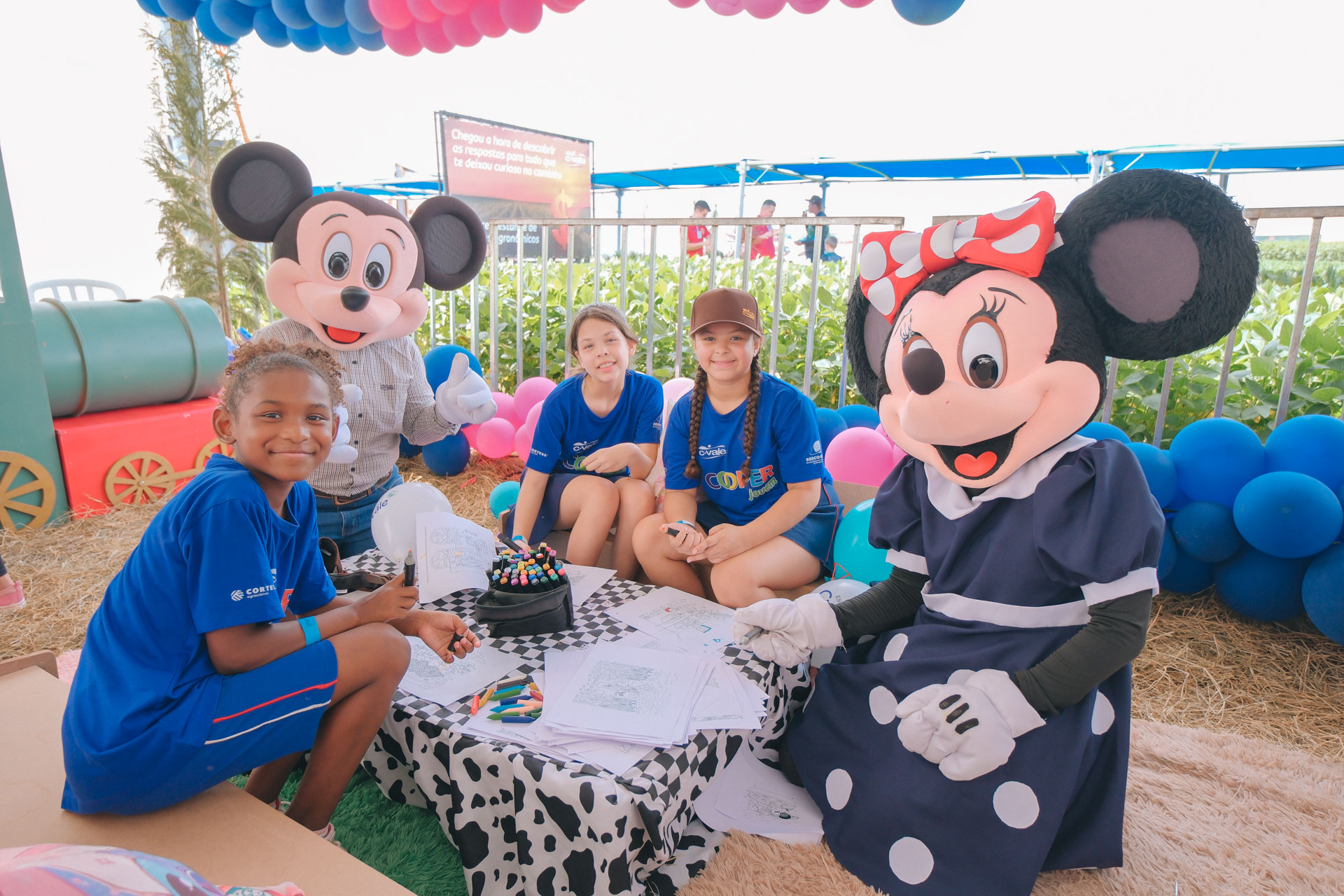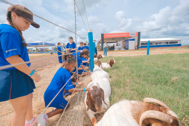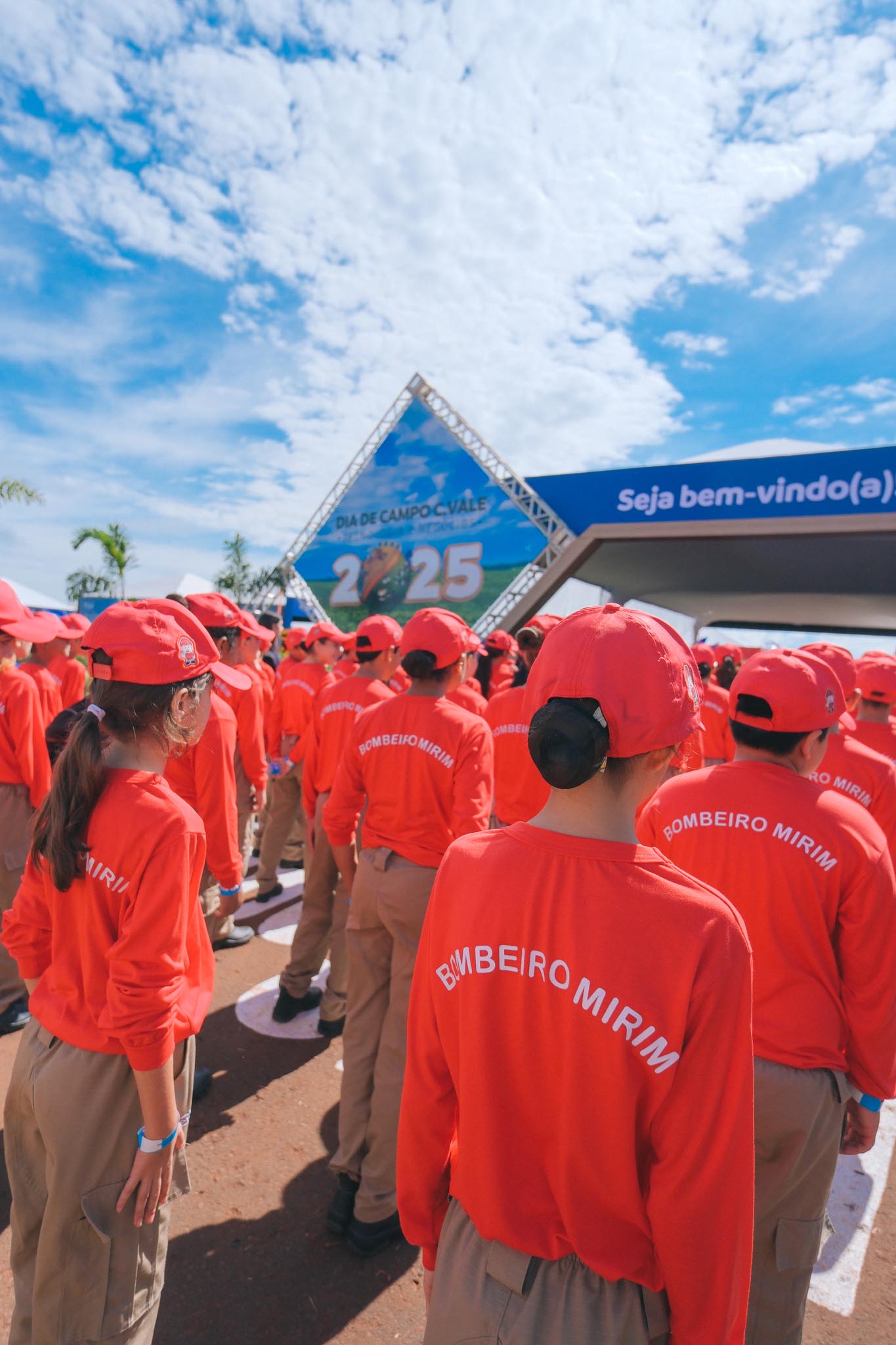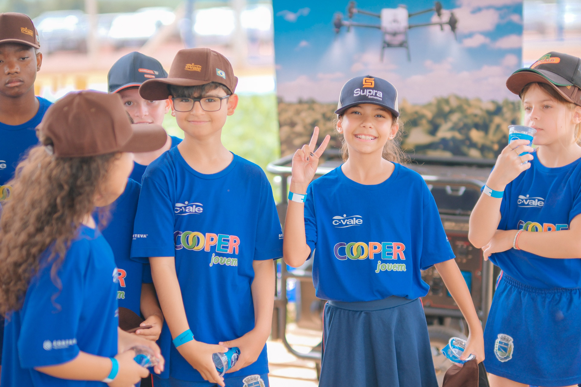 Crianças que, ao longo de 2025, participaram do Cooperjovem também estão circulando pelo campo experimental. São aproximadamente 500 crianças do programa que estão sendo acompanhadas por monitores da C.Vale. Outro grupo crianças também veio conhecer as atrações. Elas participaram do programa Bombeiros Mirins, agora em 2025, e circulam uniformizadas com roupas em marrom e vermelho. No estande institucional da cooperativa, elas recebem petiscos de carne de frango e tilápias fornecidos pela CVale Alimentos.