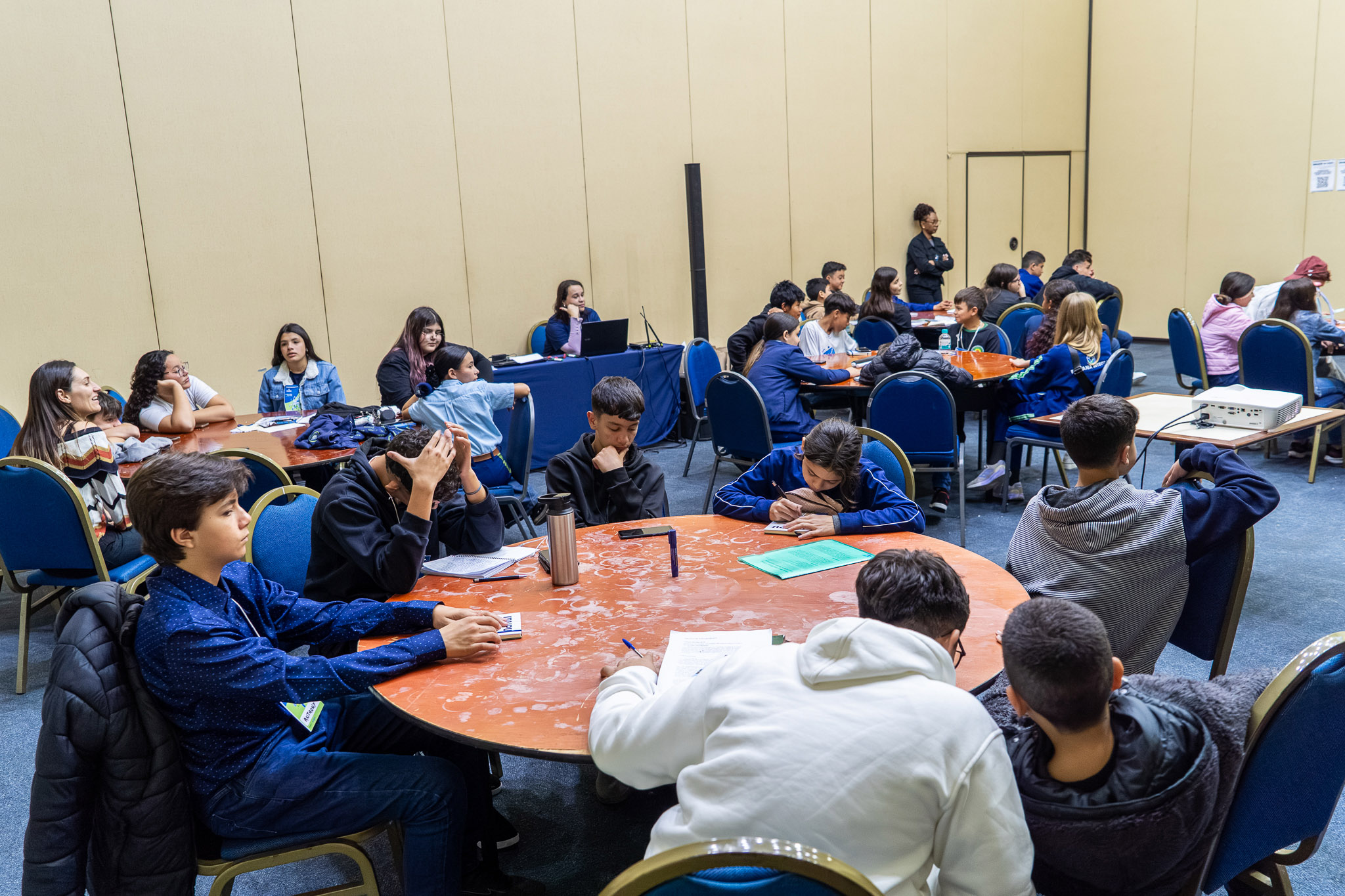 Com a temática “Vamos transformar o Brasil com educação e justiça climática”, os 60 alunos do 6° ao 9° anos do Ensino Fundamental que participaram da Conferência Estadual foram previamente selecionados por comissões formadas nos Núcleos Regionais de Educação (NREs). Eles se prepararam ao longo de 2025 nas conferências escolares.