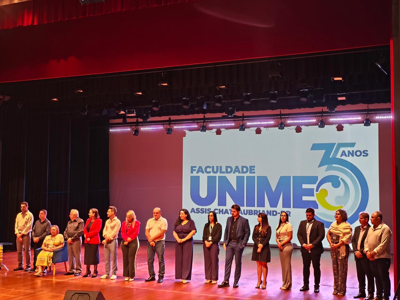 Com o tema “Legado e futuro: celebrando nossa história, 35 anos construindo novos caminhos”, a Faculdade Unimeo de Assis Chateaubriand promoveu um evento especial na noite desta terça-feira, 7, no Teatro Deputado Federal Moacir Micheletto, para comemorar seu 35º aniversário.