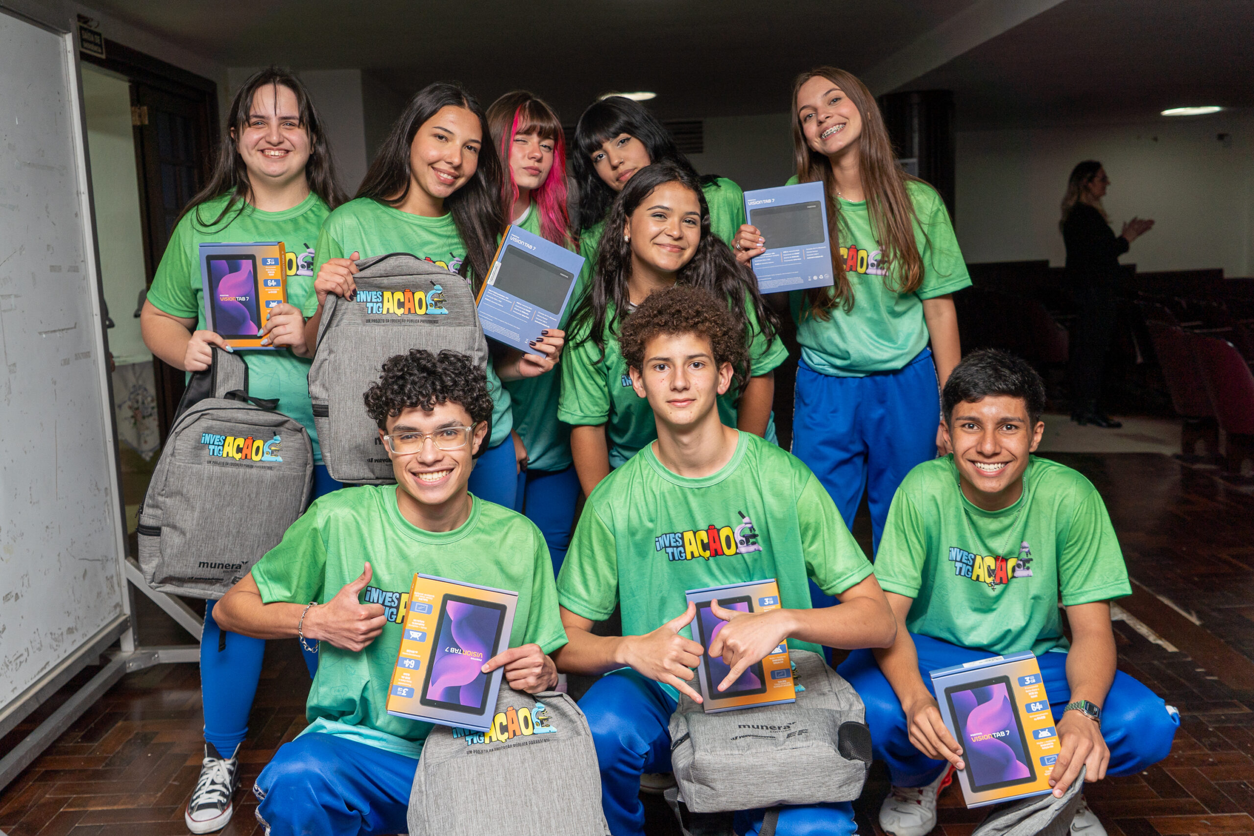 APOIO – A etapa final do investigAÇÃO 2025 contou com o apoio de três empresas patrocinadoras que subsidiaram integralmente a premiação dos estudantes e professores. A Editora Munera aportou R$ 100 mil ao projeto. Com esse investimento, a empresa viabilizou, em conjunto com a Quizizz do Brasil, a entrega de 270 tablets para todos os estudantes e professores reconhecidos.
