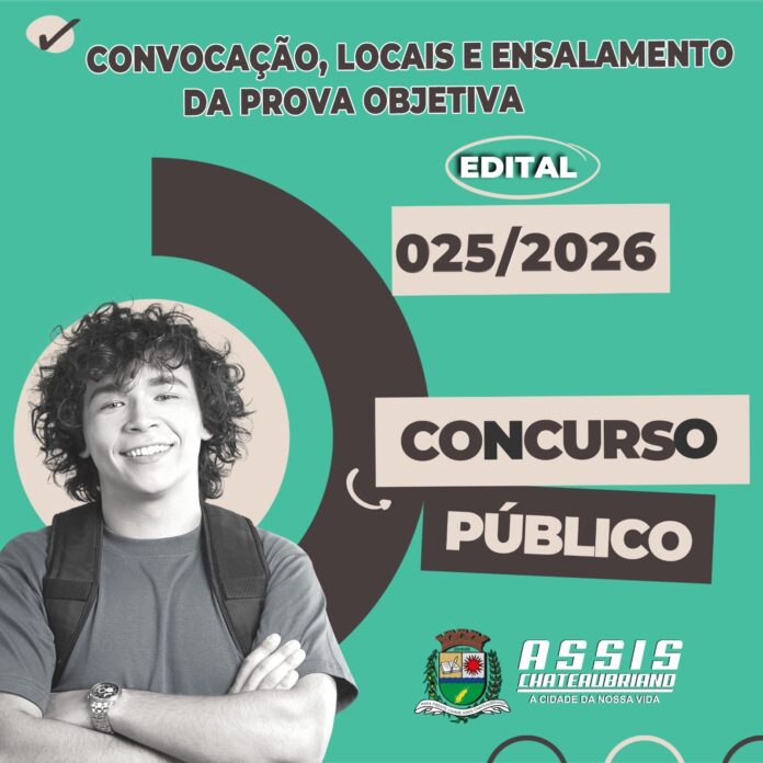 Na sexta-feira (17), foi publicado no Diário Oficial do Município de Assis Chateaubriand o edital nº 025/2026, que traz a convocação, os locais e o ensalamento para a realização das provas objetivas do Concurso Público Municipal.