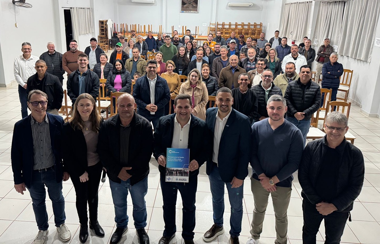 Na noite desta quinta-feira, 24, a Prefeitura de Jesuítas promoveu a apresentação oficial do Planejamento Estratégico do município, em um evento realizado no Centro de Convivência Moacir Micheletto. O encontro reuniu representantes do Sebrae, que conduziram o processo técnico, além da equipe da administração municipal, vereadores, membros da Associação Comercial e lideranças da comunidade.