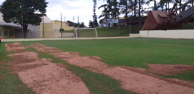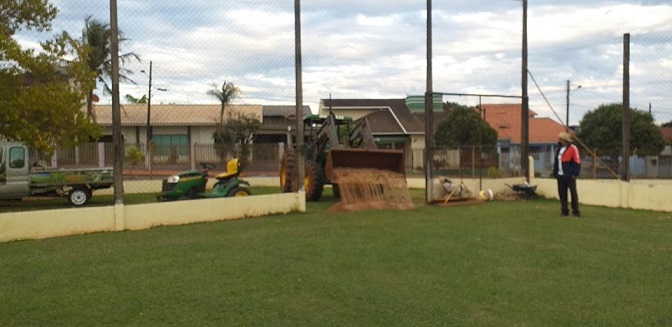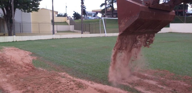 Enquanto a bola não rola o gramado do campo de futebol suíço da Paróquia São Roque de Nova Aurora, está em processo de revitalização. Hoje (16), teve início a colocação de areia e ontem foi feita a colocação de adubo.