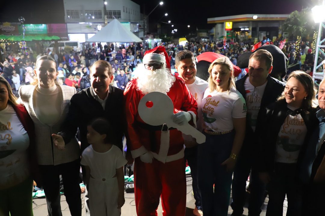 A cerimônia contou com diversas apresentações, incluindo a Fanfarra Municipal de Assis Chateaubriand e a Banda Sinfônica de Palotina. No entanto, o momento mais esperado foi a chegada do Papai Noel, que distribuiu balas para as crianças e recebeu, de forma simbólica, as chaves do município das mãos do prefeito Valter Aparecido Souza Correia, conhecido como Valtinho, do deputado estadual Marcel Micheletto e da presidente da Câmara Municipal, Franciane Micheletto.