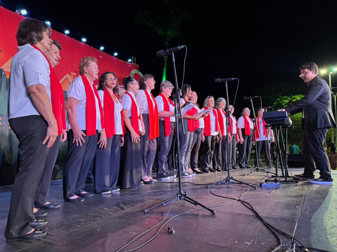 A noite contou com belas apresentações artísticas: o Coral Infantil, o Coral da Terceira Idade e o espetáculo do grupo Sou Arte, que trouxe magia, cores e emoção ao público. Cada atração contribuiu para tornar a abertura ainda mais vibrante e inesquecível.