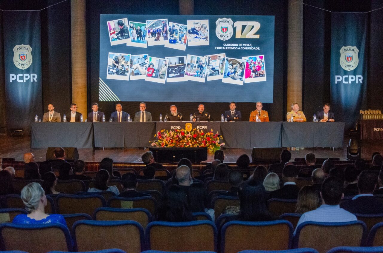 A Polícia Civil do Paraná (PCPR) comemorou nesta quarta-feira (1º) os seus 172 anos. A solenidade foi realizada no Canal da Música, em Curitiba, e teve como tema central o lema “Cuidando de vidas, fortalecendo a comunidade”. O evento relembrou a história da corporação e foi marcado por homenagens aos policiais que atuam ou que já atuaram na instituição.