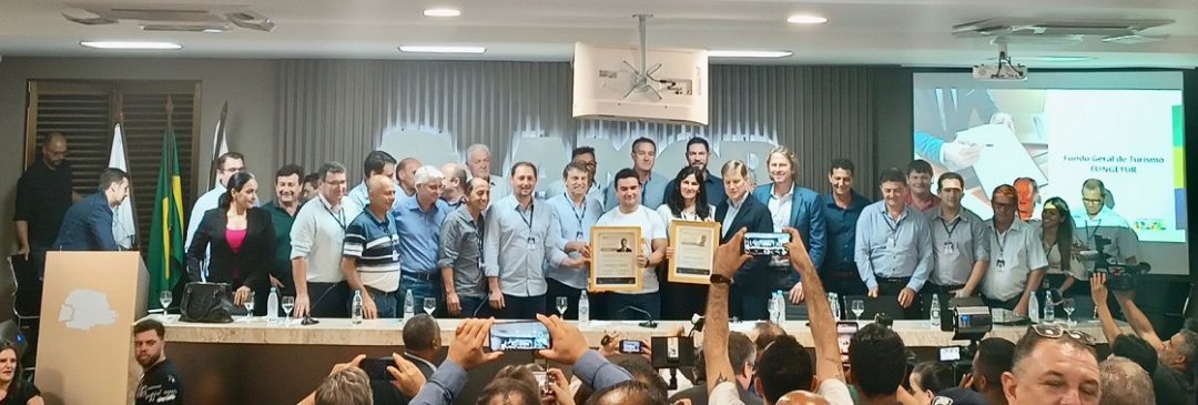 O ministro Celso Sabino anunciou a liberação de 500 milhões de reais pelo Fundo Geral do Turismo para captação de recursos e enalteceu a importância do Paraná no cenário nacional.