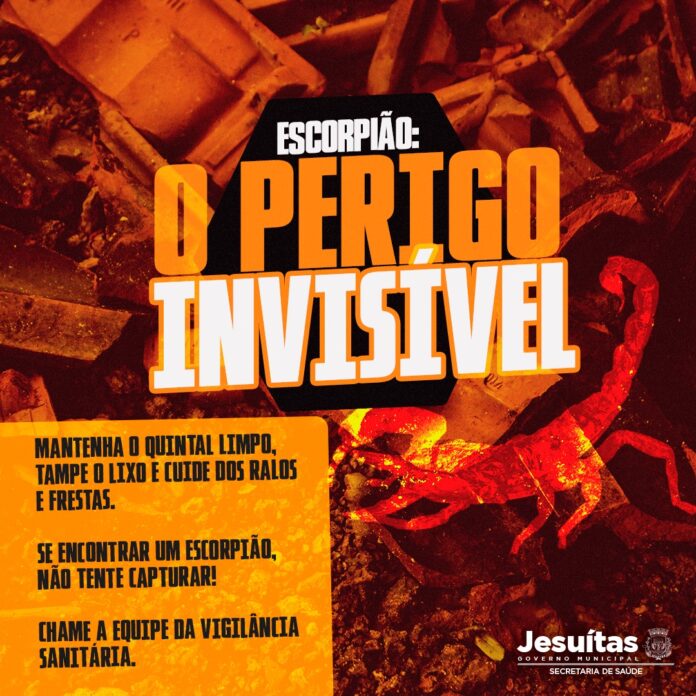 Com a chegada do calor e o aumento das chuvas, a presença de escorpiões tende a crescer. Diante disso, o Governo de Jesuítas, por meio do setor de Vigilância Sanitária, reforça o alerta à população sobre os cuidados e ações preventivas que ajudam a evitar acidentes.