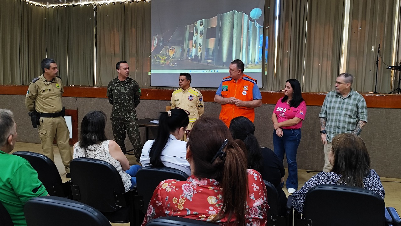 Na manhã desta terça-feira (11), a Coordenadoria Municipal de Proteção e Defesa Civil (COMPDEC) de Assis Chateaubriand realizou uma reunião estratégica com representantes de diversos órgãos e entidades locais. O encontro contou com a presença da Superintendência de Administração e Finanças de Assis Chateaubriand, Polícia Militar, Polícia Civil, Tiro de Guerra, Conselho Municipal de Segurança (Conseg), Associação Comercial Industrial e Agropecuária (ACIAC), Lions Clube, Maçonaria e integrantes de várias secretarias municipais.