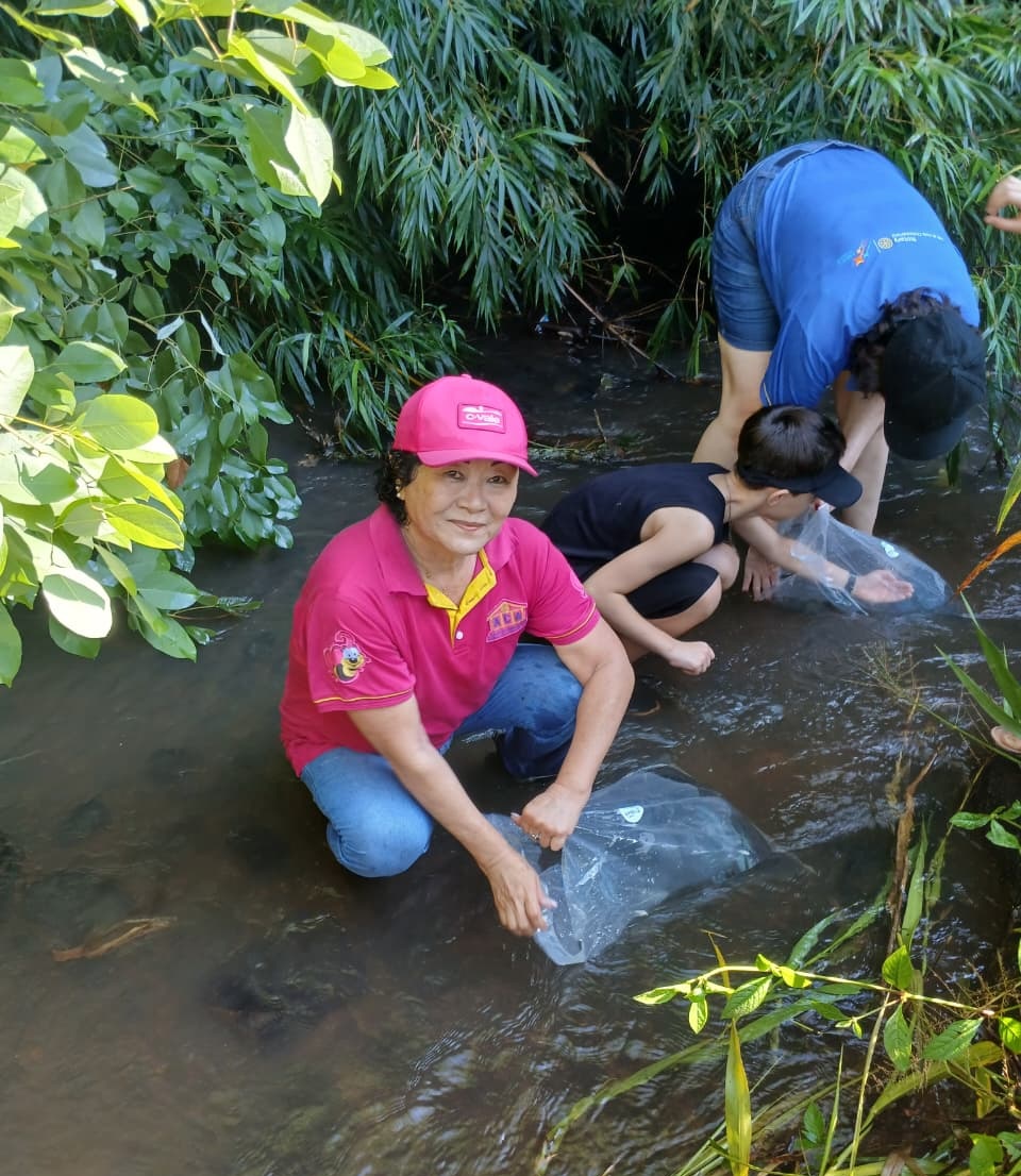 Rotary Clube de Assis Chateaubriand parceiros realizam soltura depeixes no Rio Alívio