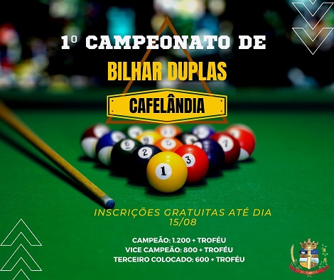 A secretaria de Esportes e Lazer de Cafelândia, iniciou na terça-feira (23), mais uma competição para os munícipes. O 1º Campeonato Municipal de Bilhar masculino com rodadas terças, quartas e sexta feiras, com início às 19h no Country Clube.
