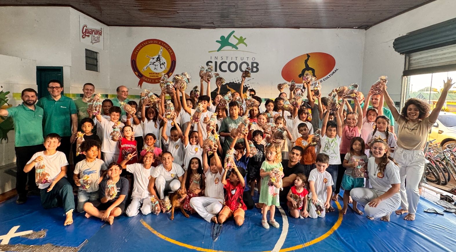 O Sicoob realizou na noite da quinta-feira, 18, um momento especial para celebrar as conquistas do Projeto Expressão Cultural/Capoeira, realizado em 2025. Implantado há vários anos e mantido pelo Instituto Sicoob, por meio do Sicoob Médio Oeste, o projeto promove a arte e a cultura para a comunidade, com aulas de capoeira para crianças. O encerramento das atividades de 2025 foi diferente, uma vez que o ano entra para a história pela aprovação do repasse de recursos mensais do Município, após aprovação unânime da Câmara de Vereadores.